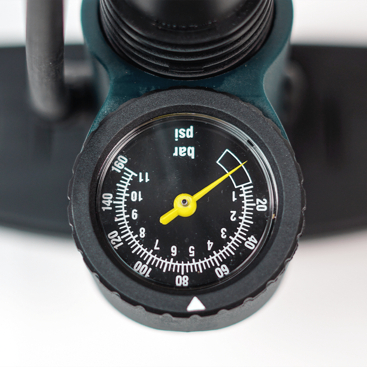 Manômetro analógico integrado, facilitando a visualização da pressão inserida no pneu;