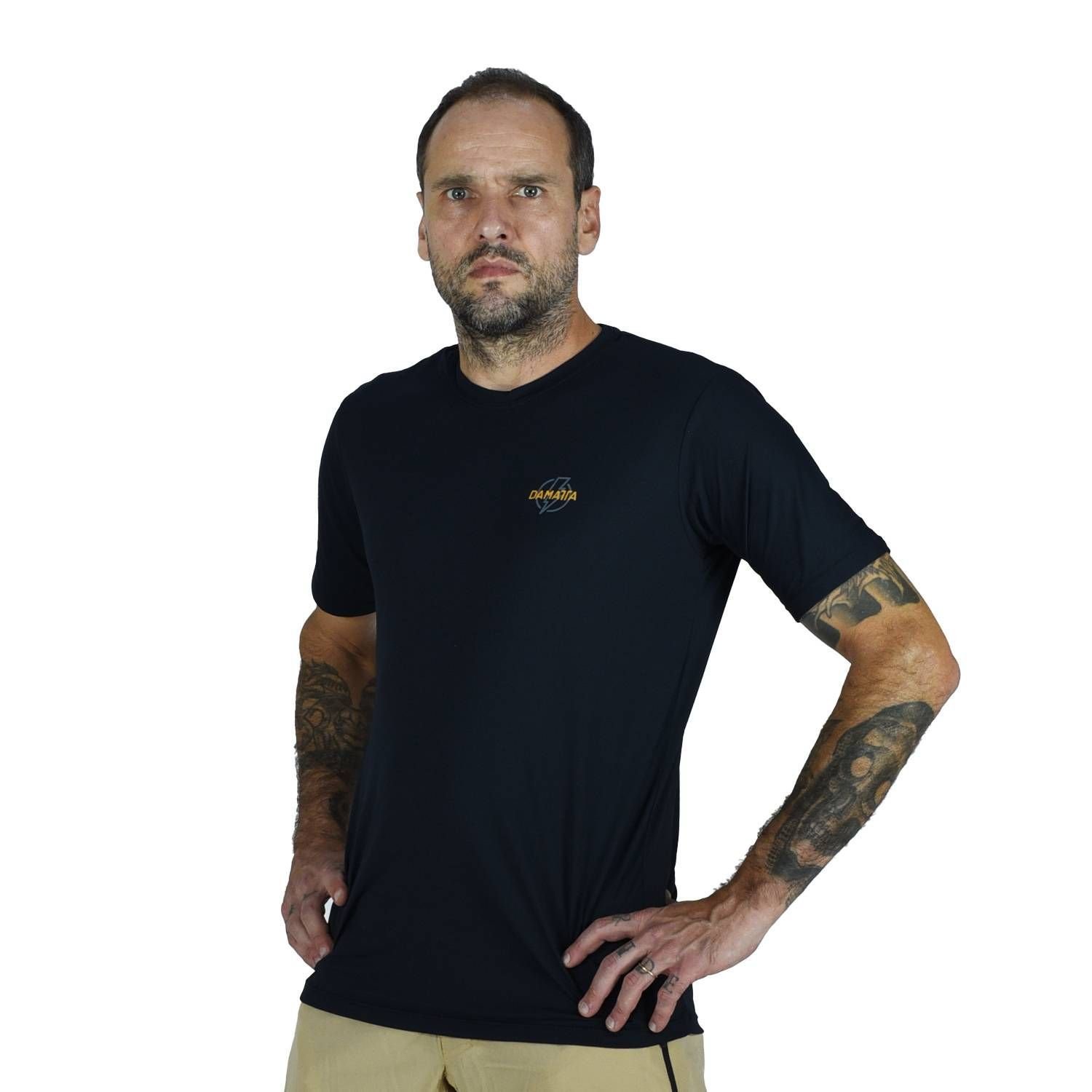 Feita 100% de poliamida, a fibra sintética mais nobre, alem de ser leve, respirável e não amassa. Desenvolvida para quem não abre mão de conforto e tecnologia. Diferente do poliéster comum, a poliamida oferece um toque sedoso e sensação de "toque gelado" que refresca o corpo durante atividades intensas.