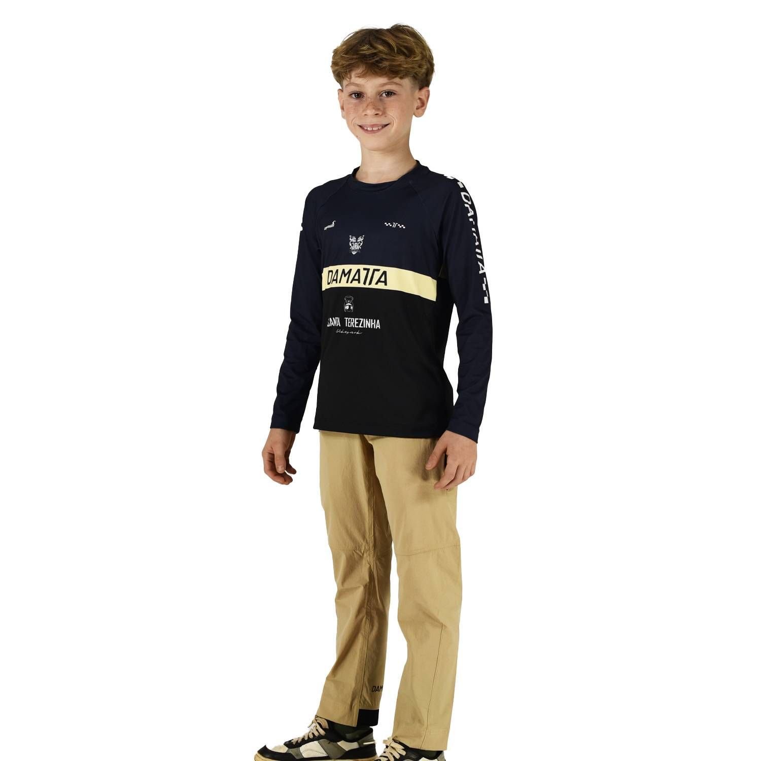 Os pequenos também mandam bem nas trilhas, e agora têm o equipamento à altura. A camisa de enduro infantil da DaMatta traz a mesma qualidade do modelo adulto, com ajustes pensados especialmente pros jovens ciclistas.